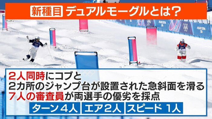 今大会から採用された新種目、スキーフリースタイル男子デュアルモーグル。