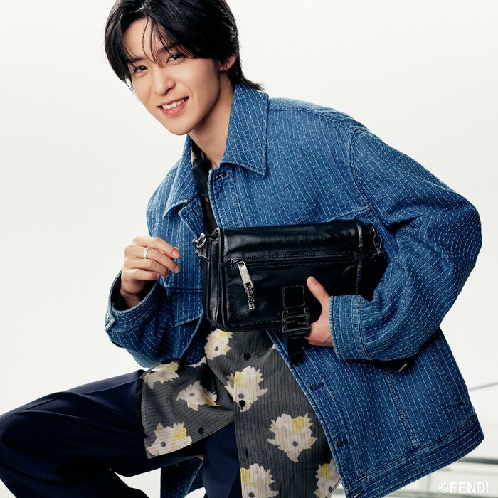 本編では、目黒さんがフェンディ2026年春夏メンズコレクションのトータルルックに身を包み、モダンなフォルムと機能性を兼ね備えた新作バッグ「フェンディ フラックス メッセンジャー」を手に、さわやかなスタイルを完成させています。