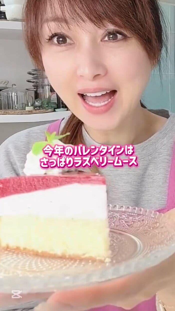 そんな渡辺さんは、動画の後半で、「今年のバレンタインは さっぱりラズベリームース」と、今年の新作スイーツをお披露目!