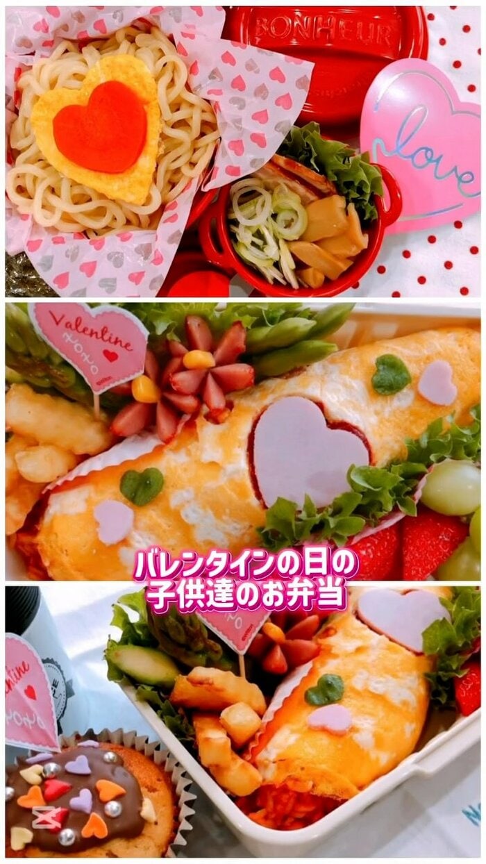 そのほか、愛情たっぷりのお弁当の写真も公開。ハート形の卵焼きやオムレツ、色とりどりの野菜が美しく盛り付けられ、周囲にはピンクや赤のバレンタインならではの可愛らしい飾りつけが施されています。見ているだけで気分が華やぐ、バレンタインムード満点の仕上がりとなっています。