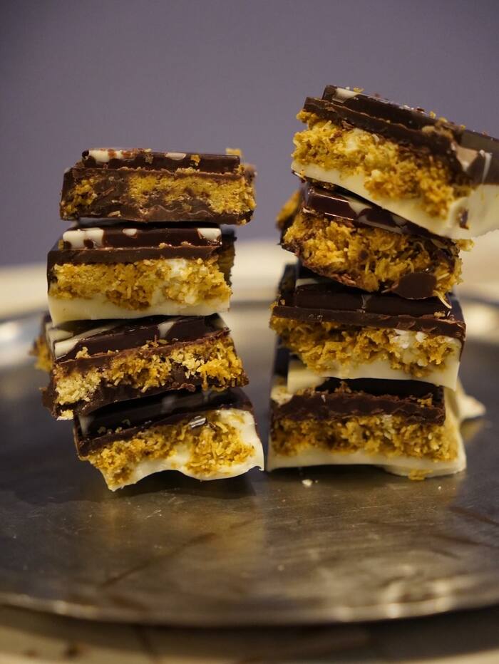 一口サイズにカットされたドバイチョコがたっぷりとお皿に盛り付けられています。