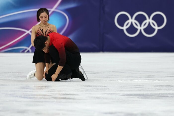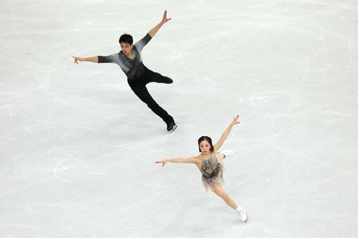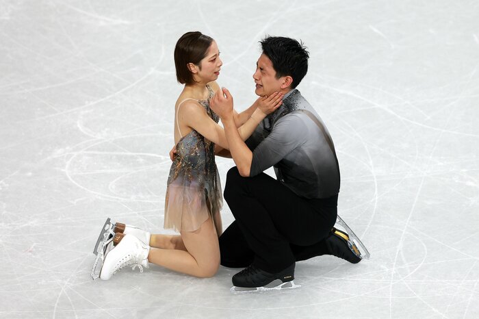 ショートプログラムと合わせて計231.24点をマークした2人は、この時点でトップに立ち、最終グループの結果を待つこととなりました。