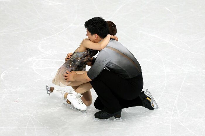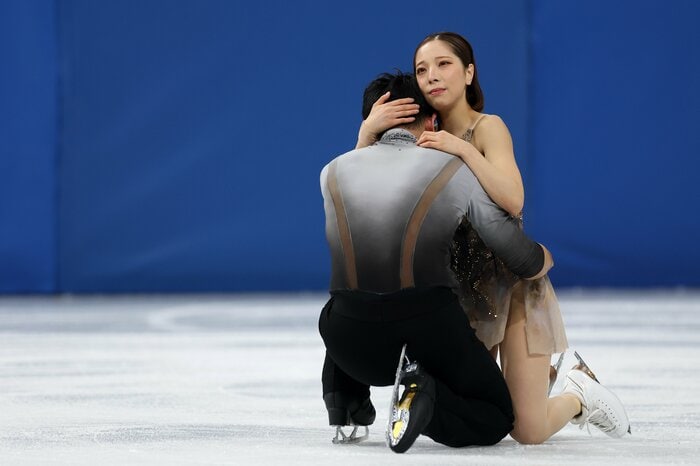 演技直後、かたく抱き合った2人を大歓声と拍手が包み込みます。
