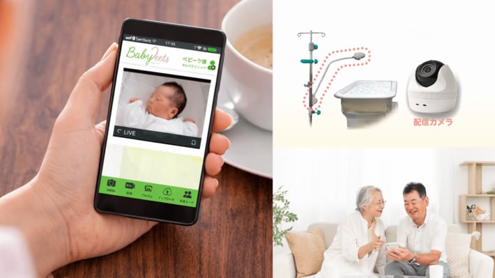 リアルタイム配信:家族みんなで、スマートフォンやPC から同時に視聴可能。高いセキュリティ:医療機関での使用を前提とした厳格な基準で映像データを安全に保存・配信。