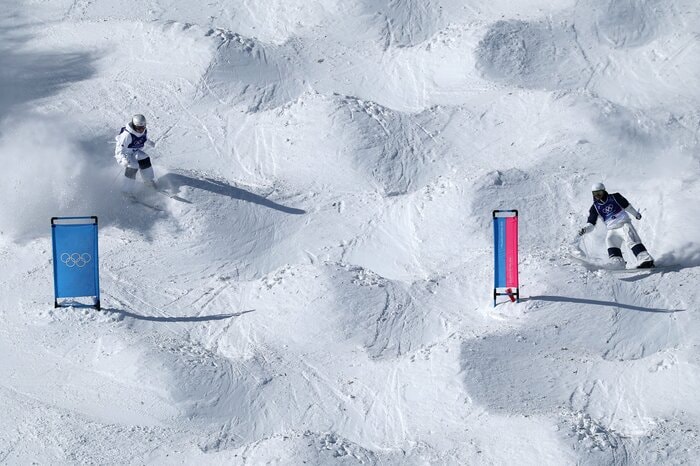 この種目は、2人の選手が同時に滑走し、ターン・エア・スピードの3つの要素を競います。