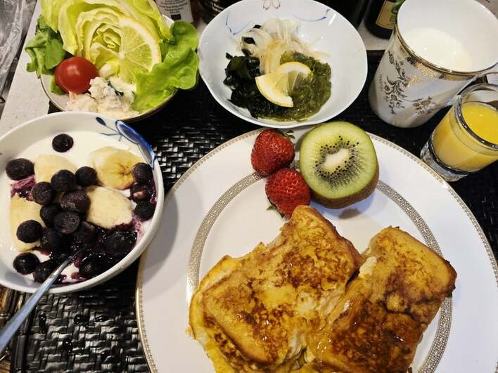 高橋さんは今回の投稿で「フレンチトーストの朝ごはん」と題し、この日の朝食を披露しました。