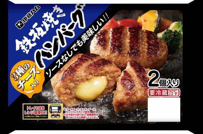 伊藤ハム株式会社は、ハンバーグ専門店の味を追求した「鉄板焼き」シリーズから、「3種のチーズ入りハンバーグ」と「ミニハンバーグ」を発売します。