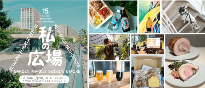 東急田園都市線・大井町線 二子玉川駅直結の大規模複合用途施設「二子玉川ライズ」は、開業15周年を記念したキックオフイベント『私の広場 -SETAGAYA REPUBLIC FES-』を、2026年3月20日(金・祝)から22日(日)までの3日間限定で開催します。