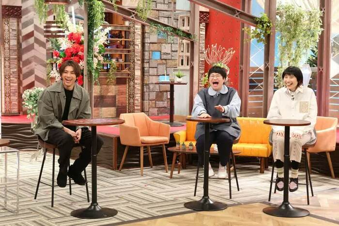 すると、国分さんが「あれ?さっきの新幹線の話は?」と意味ありげな表情。松岡さんは「それはいいじゃん」と動揺し始め、山田さんがポカンとしていると、本番前に国分さん、松岡さん、ハリセンボンさんで談笑するVTRが登場。