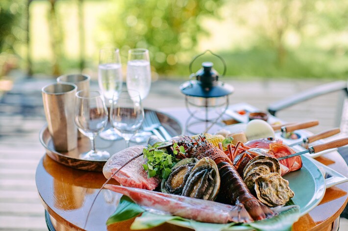 本プランでは、壱岐牛や旬の魚介、壱岐産の春野菜を中心とした会席コースを、ガーデンテラスに備えた炭火で仕上げるスタイルでご提供します。屋外でありながら、料理長監修の会席コースを味わえるのが特徴です。
