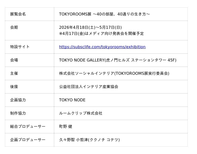 「TOKYOROOMS展 ~40の部屋、40通りの生き方~」開催概要