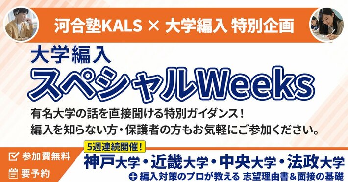 ■河合塾KALS×大学編入 特別企画 「大学編入スペシャルWeeks」概要