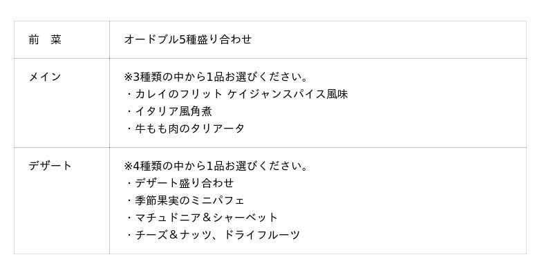 ※メニュー内容は仕入れ状況等により、変更になる場合がございます。