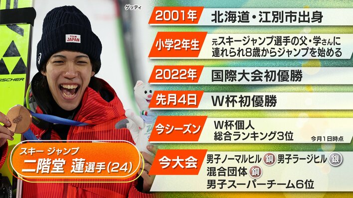 今大会、これまで3つのメダルを獲得している二階堂蓮選手。 4種目は、憧れの先輩でライバルでもある小林陵侑選手と出場するチーム戦で、金メダルを目指します。