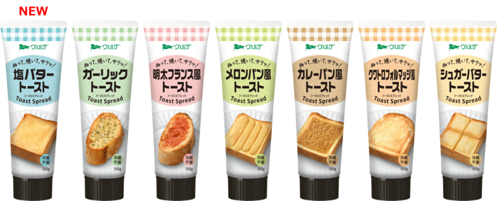 パンに塗って焼くだけで、手軽に本格的なトーストメニューを楽しめるチューブ入りスプレッドです。平口の絞り口で、スプーンを使わずにパンに塗ることができます。トーストのホカホカ感を感じる、視認性の良いパッケージに刷新しました。