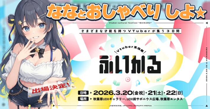 KLab株式会社(本社:東京都港区、代表取締役社長:真田哲弥)は、当社が展開するAIアイドルプロジェクト「ゆめかいろプロダクション」において、5人組AIアイドルのセンター『ゆめみなな』が、2026年3月20日(金祝)~22日(日)に秋葉原で開催されるリアルイベント「VTuber文化祭『ぶいかる』」へ出展することをお知らせいたします。
