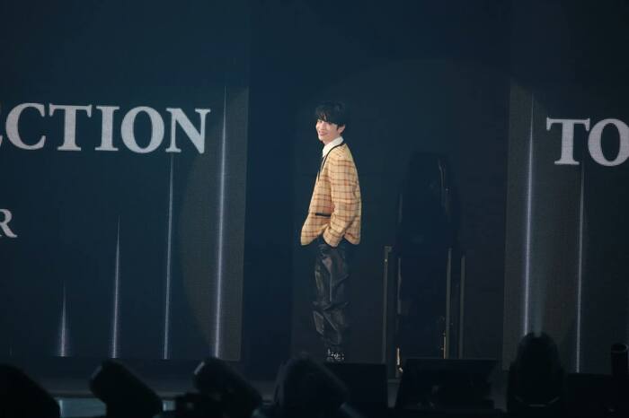 一度ステージ袖に戻った志尊さんは、チェックのカーディガンで軽やかな装いに着替え再登場。