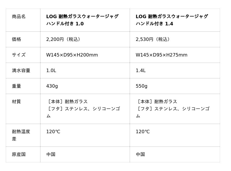 「LOG 耐熱ガラスウォータージャグ ハンドル付き」を2026年1月に発売しました。