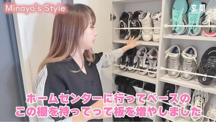 その隣には、渡辺さん専用の靴箱も。スニーカー、ヒール、ブーツなど50足以上あり、ファッションを楽しんでいることがうかがえますね。