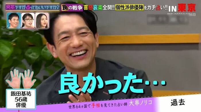 現在56歳の飯田さんは、3〜4年前に結婚。大串さんは「女性で大きく運気が変わる。奥さんがいなかったら、62歳くらい(が寿命)」と告げ、飯田さんは「みんな、ありがとう…」と、噛み締めました。