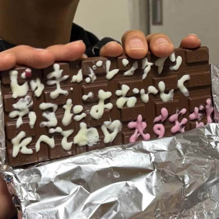 板チョコいっぱいに、チョコペンでメッセージが書かれているようです。