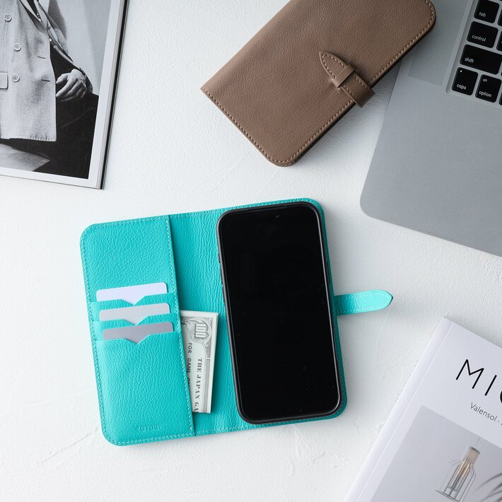 落ち着いた佇まいの手帳型iPhone用レザーケースは仕事の場でもプライベートの場でも違和感なく使用できます。スマートフォンが「単なるデジタルデバイス」ではなく、「装いの一部」「ファッションアイテム」として昇華させます。