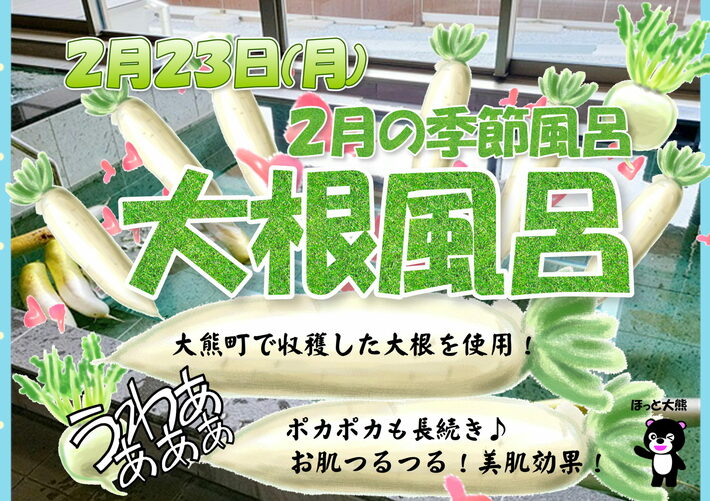 ほっと大熊では、2/23(月・祝)に2月の季節風呂