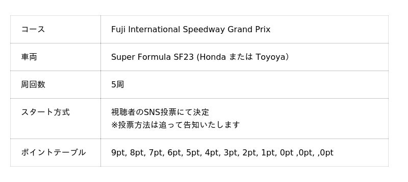 今回は下記のタイムスケジュール・レースフォーマットにてレースを実施し、勝者を決定します。13:28~13:38 スプリントレース1.