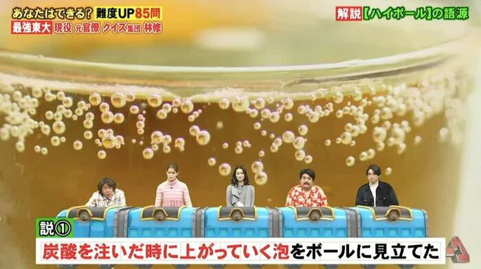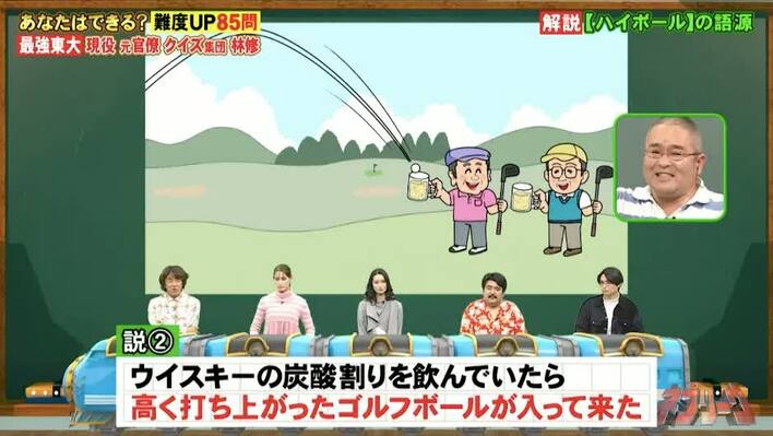 「ハイボール」という言葉を答える問題では、地理担当の村瀬哲史先生が「ハイボール」の語源について教えてくれました。