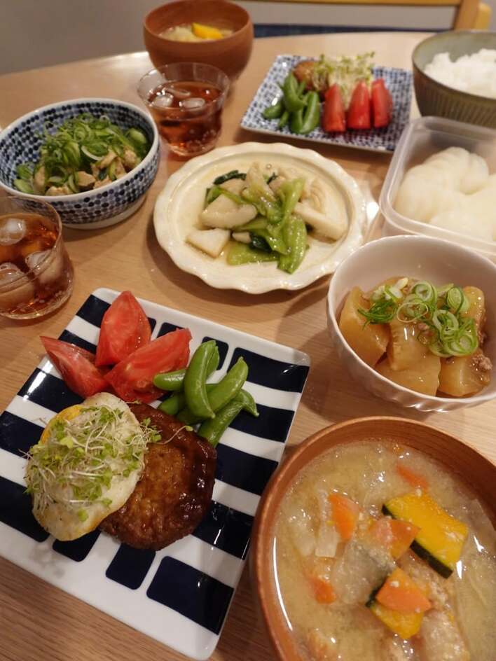 続けて、「そんな日はメインのハンバーグは買ってきて昼の余り物をお皿に盛り味噌汁を作れば美味しそうな夕飯になりました。」とつづった加藤さんが公開した写真を見てみると、そこには丸いテーブルに2人分のご飯が用意された様子が写し出されています。