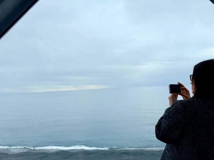 「曇り空だったけどこれはこれでいいよね」「海が一望できて、お料理美味しくて最高」と、レストランからの眺めと食事に満足した様子の野々村さん。