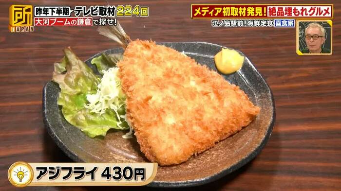 また、2代目店主の浩崇さんが「世界一おいしい!」と勧める「アジフライ」(430円)も、「カリッとしててフワフワですよ。こんな肉厚なアジフライ初めてです。脂がのっていておいしいです。エラ呼吸ばんざい」と感激しました。