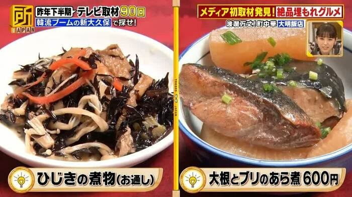 飯尾和樹(ずん)さんは、年間600万人の観光客が訪れる神奈川県の「鎌倉」で、大久保佳代子(オアシズ)さんは、韓流ブームの影響でここ20年で飲食店などが急増している東京都の「新大久保」で“絶品埋もれグルメ”を探しました。