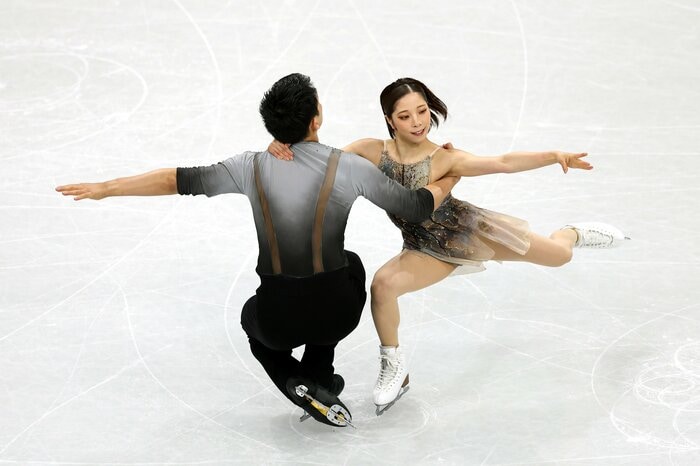 ショートプログラムでリフトにミスが出てしまい、5位発進となった りくりゅうペア。