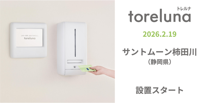 株式会社ネクイノ(大阪市北区、代表:石井 健一)は、トイレの個室で生理用ナプキンを常備し無料で提供するサービス「toreluna(トレルナ)」(以下 トレルナ)を、サントムーン柿田川へ設置し、サービスの提供を開始いたします。