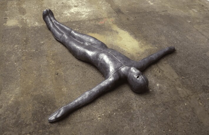 《Fill》は、作家自身の身体を型取り、鉛を用いて制作された初期の作品で、作家の思考の原点を示す重要な一点です。身体の内部に潜む闇と外部に広がる空や光との対比を主題とし、伝統的な彫刻に見られる直立した英雄的身体像に異議を唱え、身体を地球や惑星との関係のなかに置き直す試みでもあります。