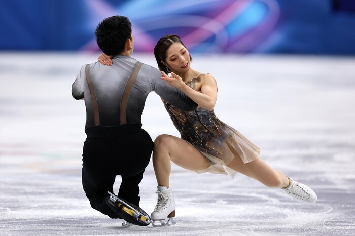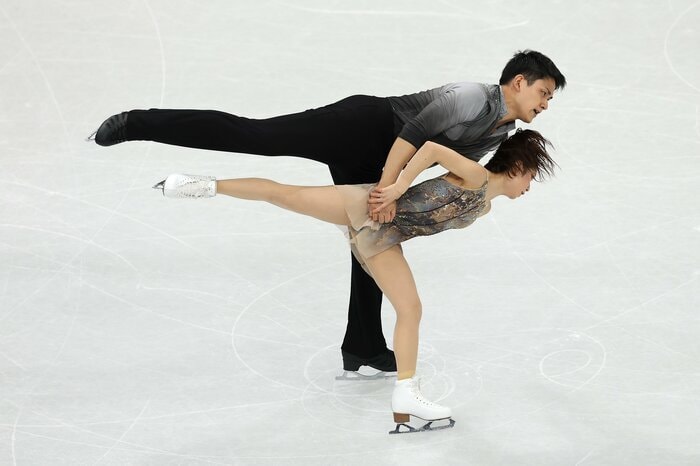 ショートプログラムと合わせて計231.24点をマークし、日本ペア史上初の金メダルを獲得。