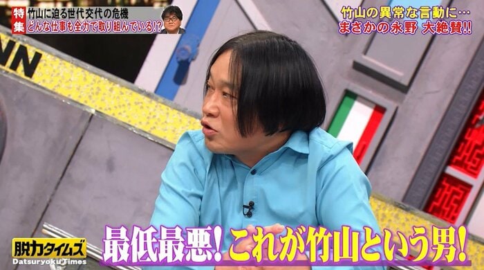 さらに、永野さんが「いや、最高!これが竹山でしょ!セクハラ・モラハラ・パワハラ、すべてありました。もう、世代交代はない。最低最悪。これが、僕が憧れた竹山という男です」と、まさかの大絶賛。