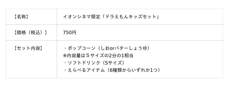 ※「イオンシネマ松江」では「ドラえもんキッズセット」の販売はございません。