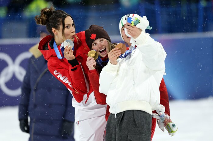 他にも、ビッグエア金メダリストのメーガン・オールダム選手、銅メダリストのフローラ・タバネッリ選手と一緒に自撮りする場面では、口元をすぼめたおちゃめな表情で、自然体あふれる楽しげな姿を披露したり…