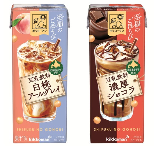 キッコーマンソイフーズ株式会社は、3月23日に、「キッコーマン 至福のごほうび」シリーズを全国で新発売します。「至福のごほうび 豆乳飲料 白桃アールグレイ」「至福のごほうび 豆乳飲料 濃厚ショコラ」の2種類です。