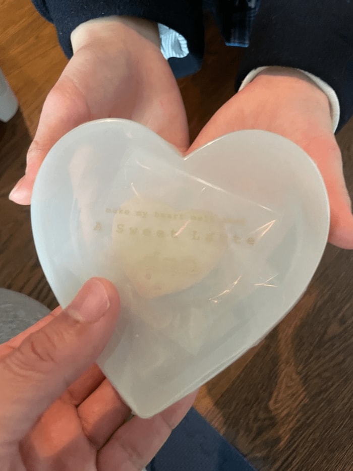 容器を開けると、中にはハート型のクッキーやフロランタンが丁寧に個包装されて収められており、手作りならではの温かみが感じられます。心のこもった贈り物に、思わず顔がほころんでしまいそうです。