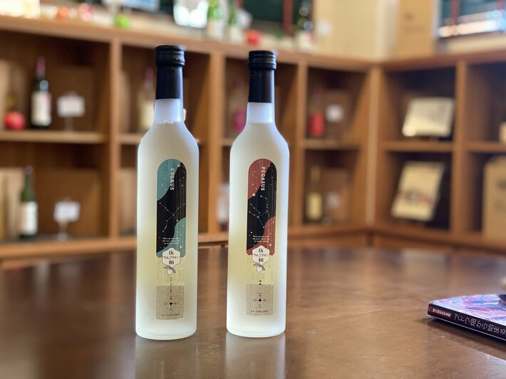 シナノゴールドを使った中甘口ワインCYGNUSと、秋映を使った中甘口ワインPEGASUS 第二弾の2種類