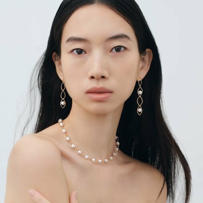「穏やかで平穏な生活が末長く続きますように」との願いが込められた青海波(せいがいは)から着想を得たコレクションは、静けさのなかに秘められた奥行きとたゆまぬ水の流れが表現されたデザイン。 アコヤ真珠の柔らかな光沢が際立つ繊細な波の連なりに、静謐なエレガンスが宿ります。
