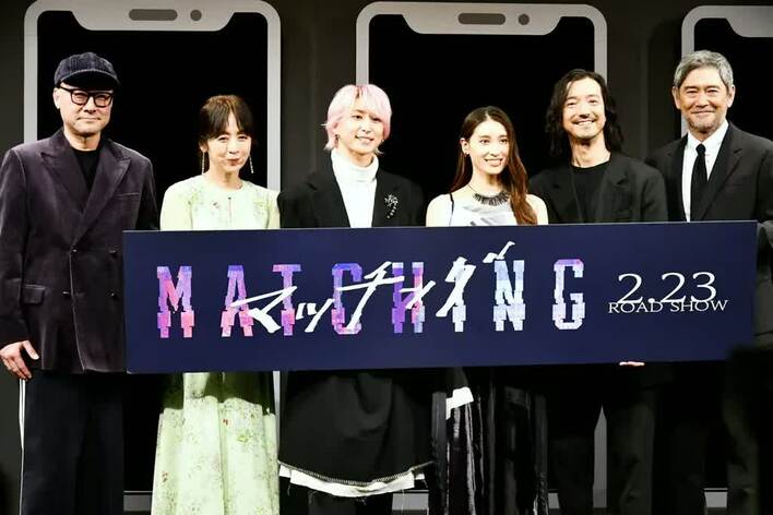 1月17日、映画「マッチング」の完成披露試写会が行われ、土屋太鳳さん、佐久間大介(Snow Man)さん、金子ノブアキさん、杉本哲太さん、斉藤由貴さん、内田英治監督が登壇しました。