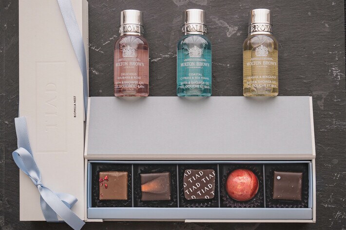 名古屋のラグジュアリーライフスタイルホテルTIADと、英国の伝統と革新が息づくラグジュアリーフレグランスブランド モルトンブラウン。この二つの高貴なブランドが手を組み、生み出した限定ショコラコレクションが、多くのお客様にお楽しみいただいております。