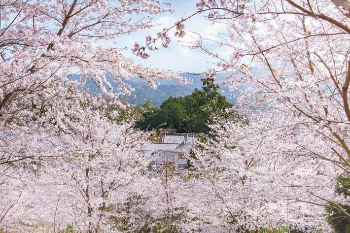森林保護と景観・環境保全のために植樹された約200本の桜が、美しく咲き誇る「サクラ山」。伸び伸びと枝を張り、春の空に溶け込むように美しい花を咲かせます。枝越しに望む春の比叡山と、山の斜面を覆うように見事に咲く桜は感動の風景です。