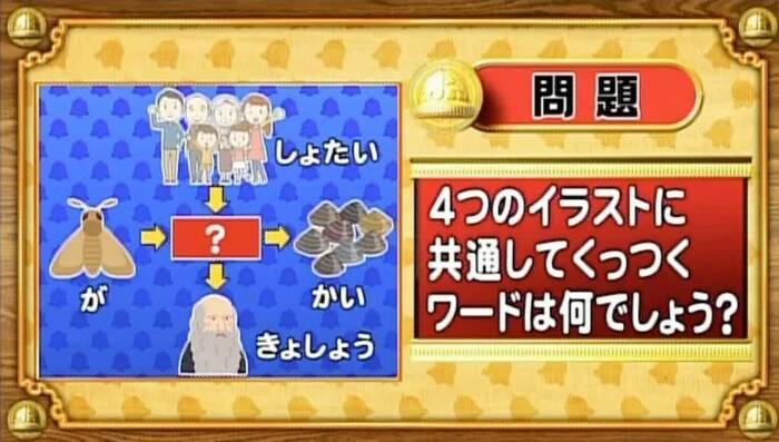 まずは「脳ミングアップクイズ」から、くっつきワードの問題。次の4つのイラストに共通してくっつくワードは何でしょう?