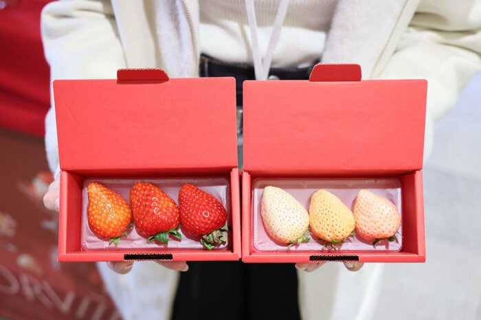 ポップアップ限定商品の「EDITION 2026 LIMITED BOX」は、「BENI」(1500円)が「とちおとめ」「古都華」「あまりん」の3品種、「SHIRO」(1980円)が「ミルキーベリー」「淡雪」「コットンベリー」の3品種を食べ比べできる、贅沢なセットです。