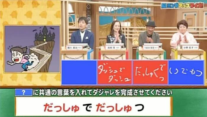 正解は「だっしゅ(ダッシュで脱出)」。高樹さんと枝豆さんが正解。